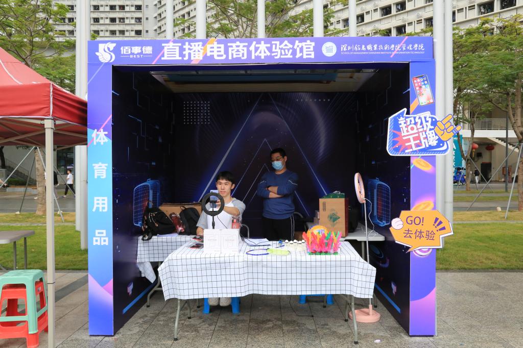 决赛前夕,依托学校体商嘉年华系列活动,管理学院为选手们设置直播电商体验馆。(来源:管理学院)