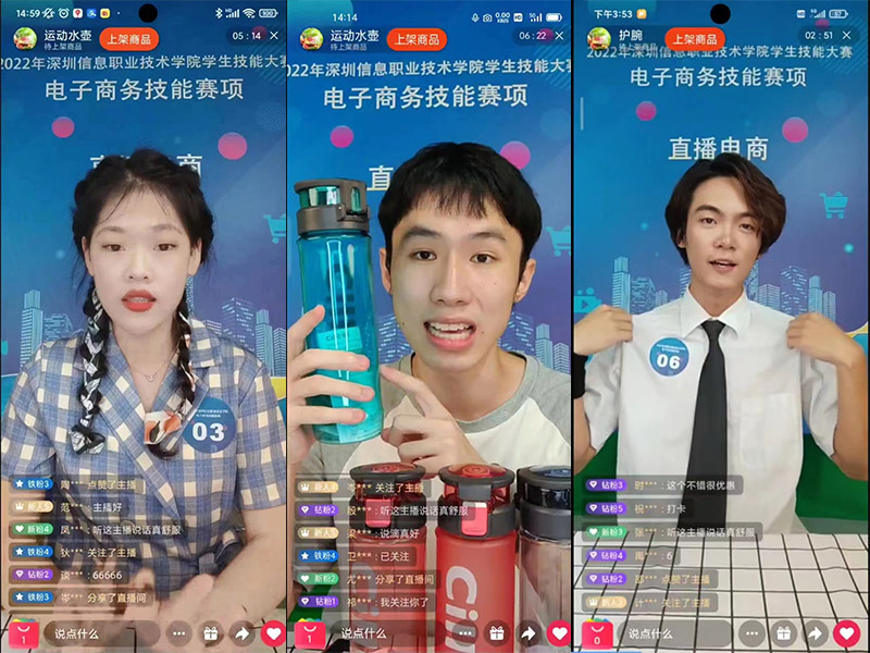 经过两轮比赛,决出校园十大主播,图为校园金牌主播谢细漫(管理学院)、银牌主播陆锦成(管理学院)、铜牌主播叶恒信(数字媒体学院)直播风采展示。(来源:管理学院)