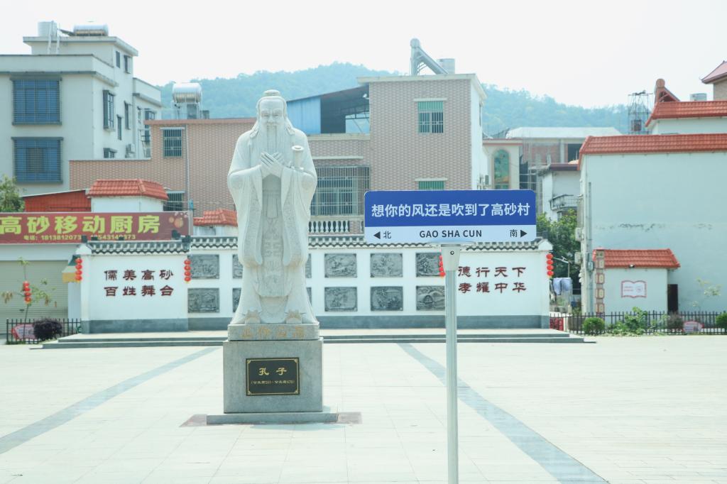 队伍一行与高砂村村党总支部共同在高砂村孔子文化广场铺设网红打卡点——“想你的风还是吹到了高砂村”路牌。