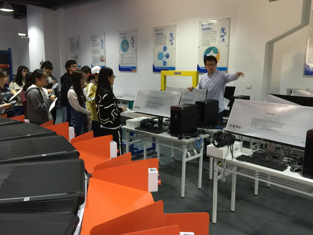 物流专任教师杨东海在现代物流实训室为同学讲解